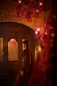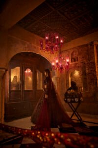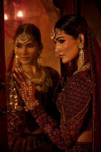 The Gulnaar Bridal captures the intense, vibrant beauty of the pomegranate flower. This ensemble is crafted in a celebratory hue, featuring an exclusive, flowing motif that is both eye-catching and traditional. It is a testament to vibrant Indian artistry and Herpret Couture’s commitment to delivering uncompromising couture excellence.