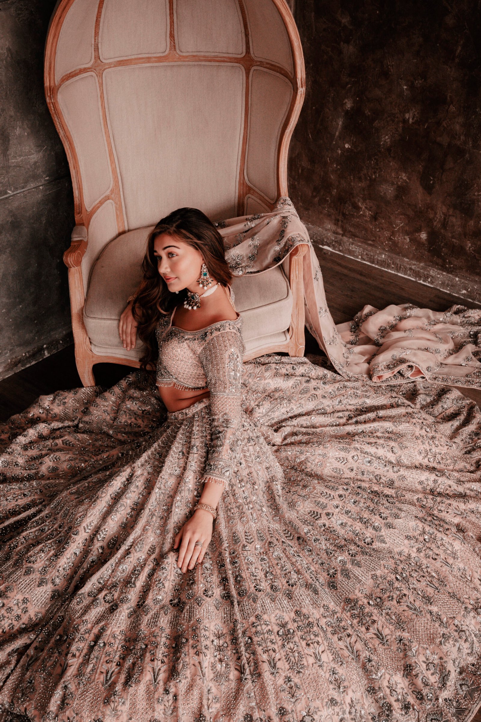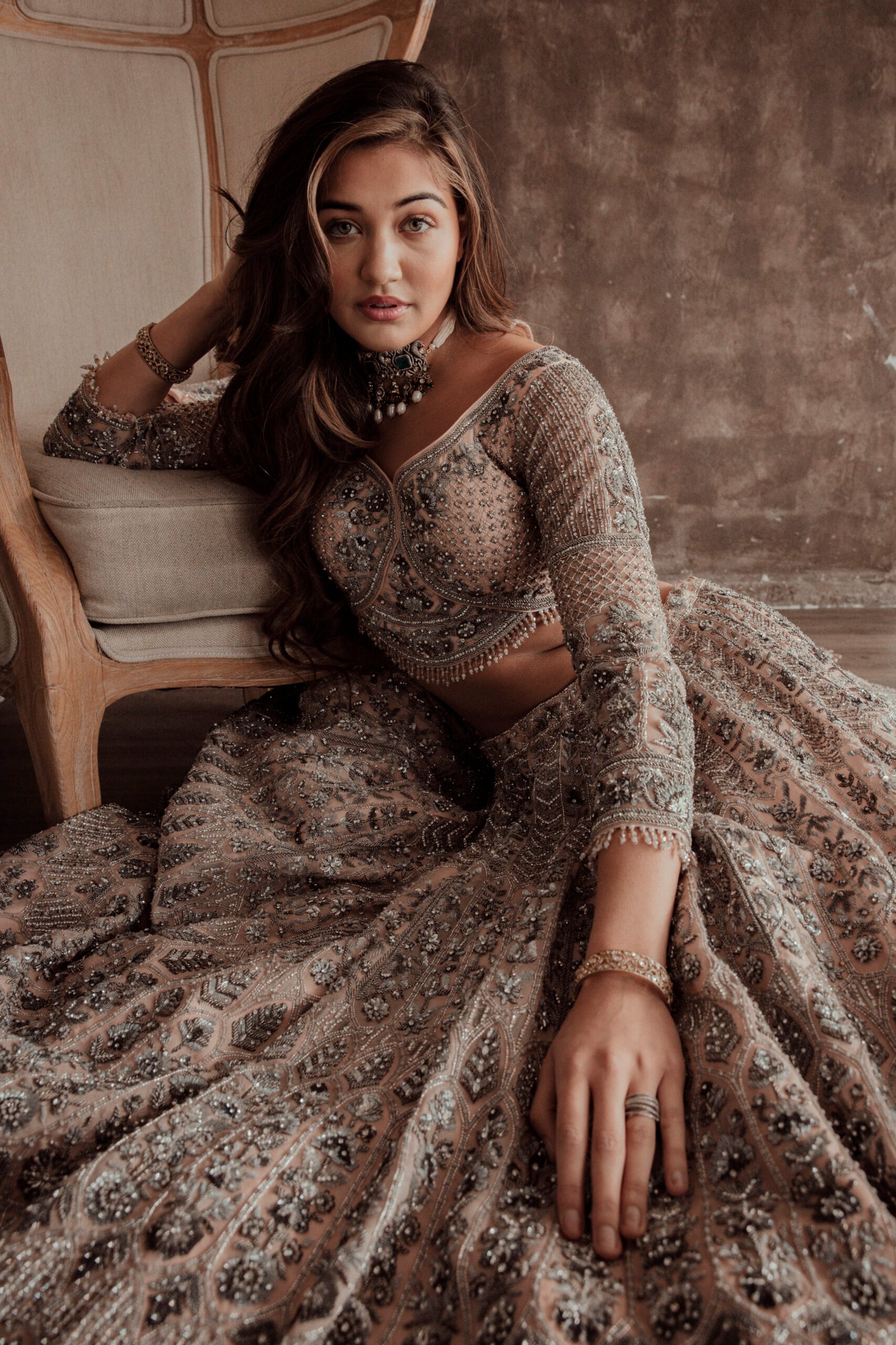 The Priyasi Bridal piece is an intimate celebration of love and artistry. This textured silk lehenga features a bespoke motif that is both subtle and intensely detailed, reflecting true fine artistry. Designed to drape beautifully, it is the perfect statement piece that balances traditional volume with modern, uncompromising couture excellence.
